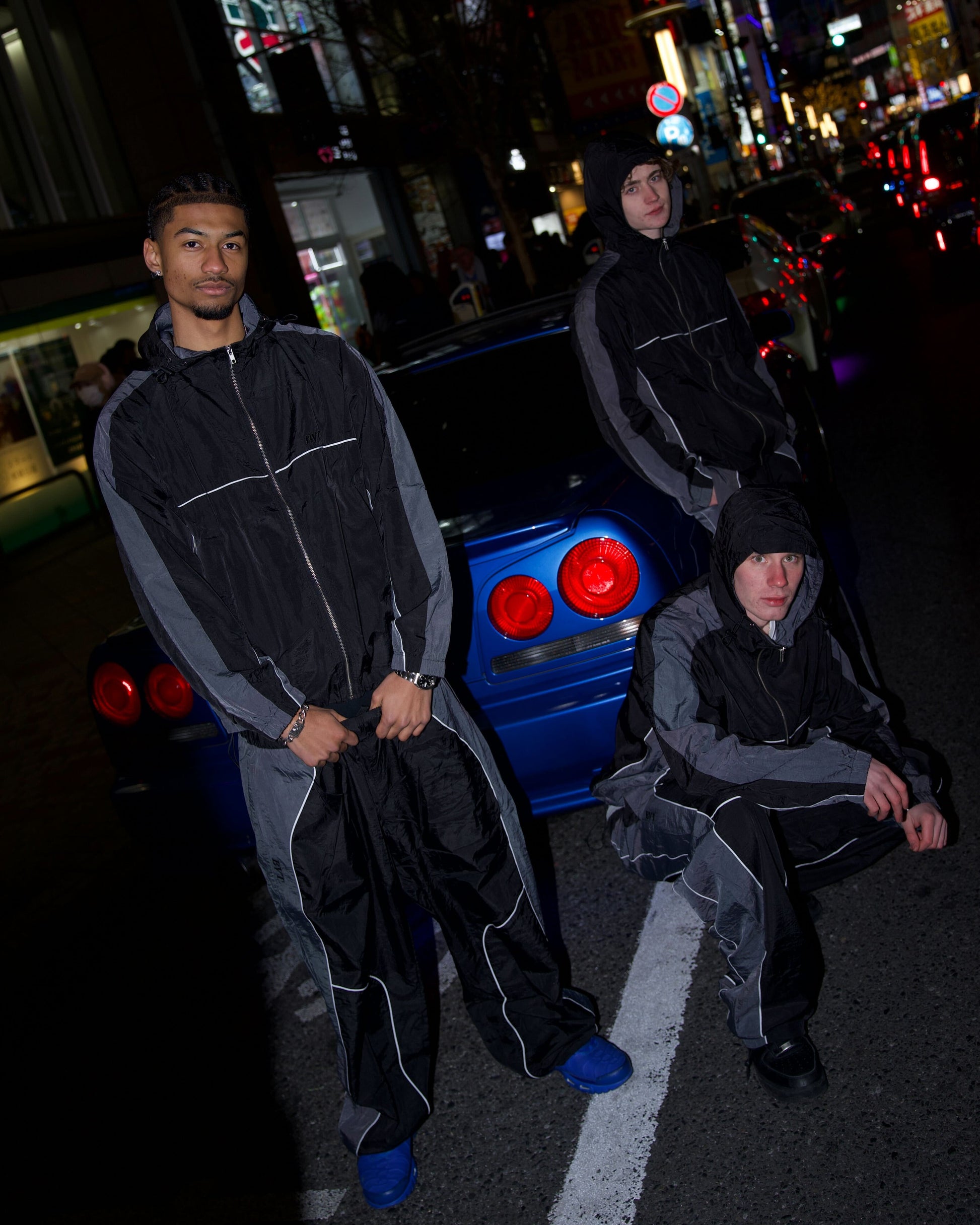 A nylon set featuring original cut-outs that can be coordinated with a wide range of outfits, from outdoor to streetwear.